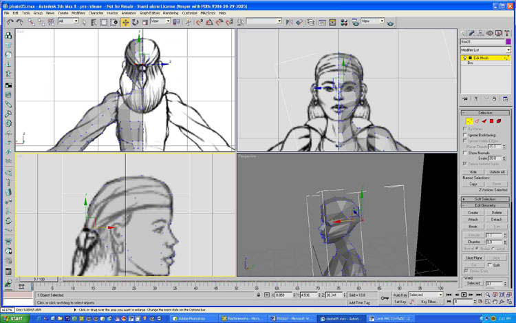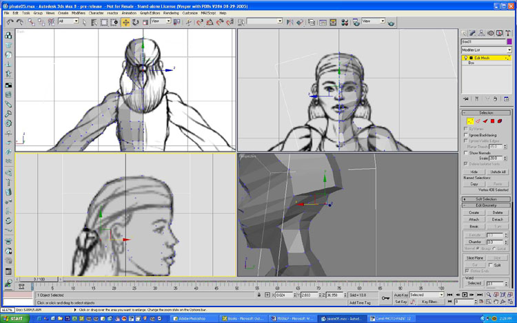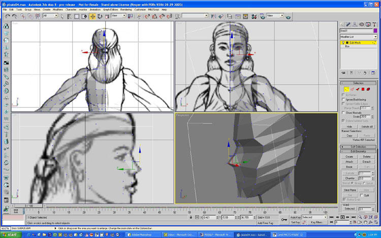 12. Use the Snap tool,set to Vertex,to pull the top of the extrusion back to the forehead.
