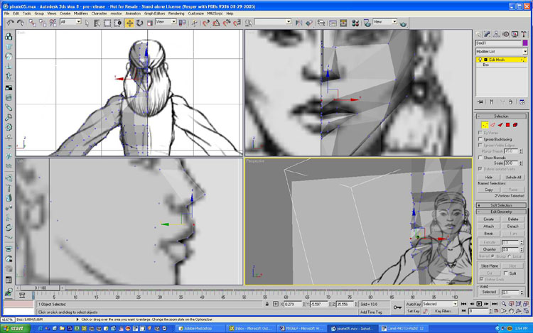 15. In Vertex Selection mode,shape the lips to follow the contours of the lips on the template,as shown in Figure 55.