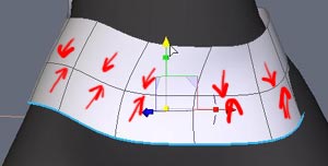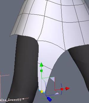 To make the “tails” on the skirt, I edge-extrude where I want them to hang down from, scaling them down with the universal scale on the gizmo as I go.