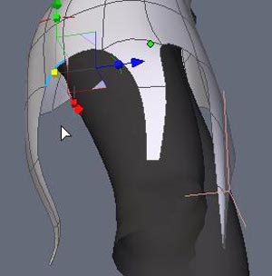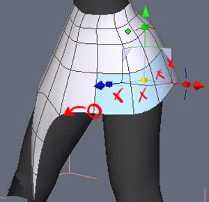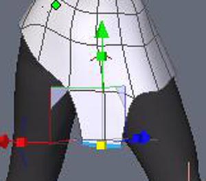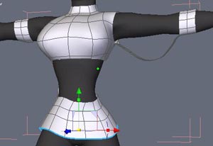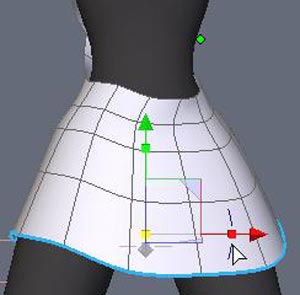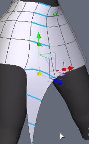 Repeat making a third row of polygons. Resize them to fit the shape of her legs and butt.