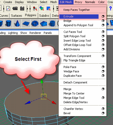 3-now select the top face and then go to (Edit Mesh>>Extrude) like the image below,