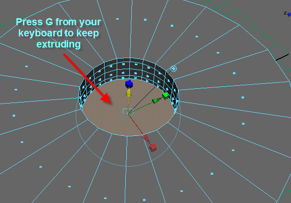 5-once you extrude press (G) from your keyboard to keep extruding and then extrude the newly created face downward 3 times as below.