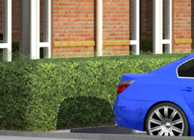 9) Ok, you are almost there! This is actually the final step, and again depending on the angle and on how far is your hedge placed from the camera you may skip it. In this last step you should correct the shadow projected by the hedge; the initial one that came directly from the render, is a straight line and it is not correct. The easiest way to “brake” it either by using a clone tool with a leaf brush or something similar