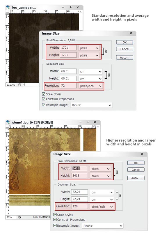 All the bitmaps are either high quality jpegs or tiffs with LZW compression to to keep the filesize smaller (LZW doesn’t affect the quality that much so it’s useful if you work with tiff files). The average filesize for a texture is about 1 – 1,5 mb at 72 dpi and around 1500 – 2000 size in pixels, but some of them are larger in resolution and size as noted below, so the maximum filesize for the textures was around 4 mb, I think.