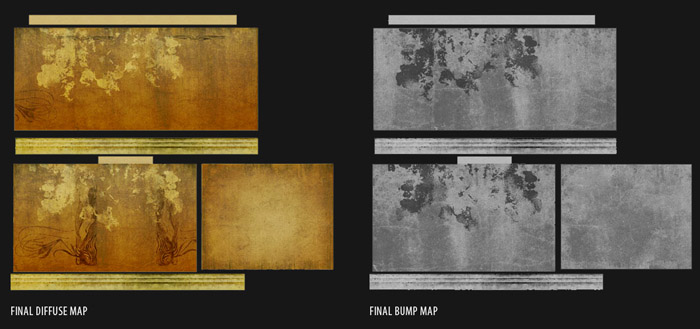 Other wood textures and the ones which contain dirt or scratches that reflect less, were made with similar procedures, where all of them use specular maps, but not the reflection glossines maps, because it didn’t seem necessary to use them in every case.