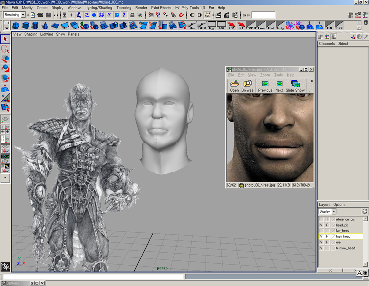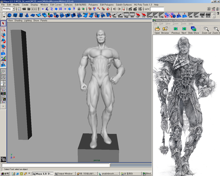By the way, the picture doesn’t have any side view and front view, so It’s little bit hard to make full figure. so I used a proxy model before I made character. I can think of how tall he is and how defined his muscles will be.