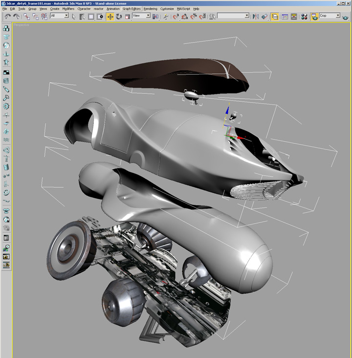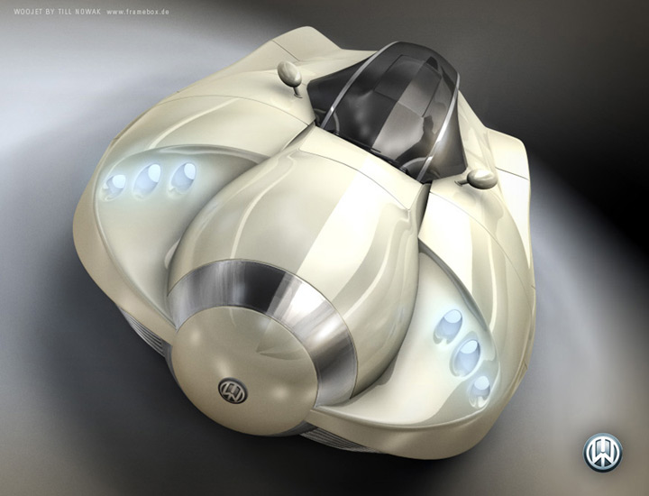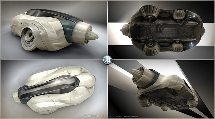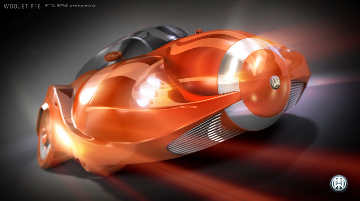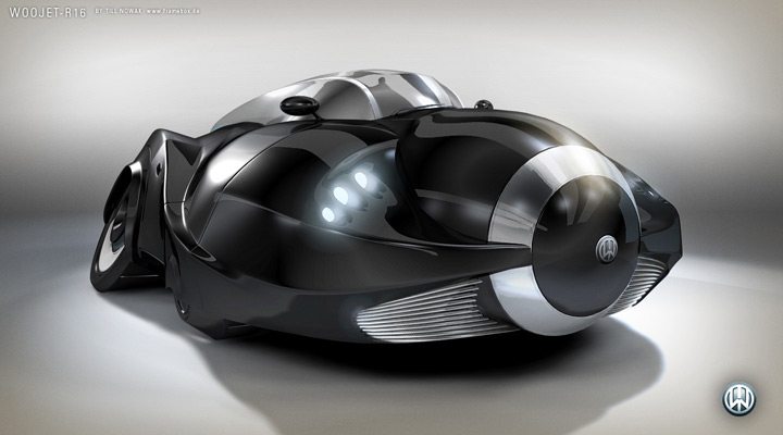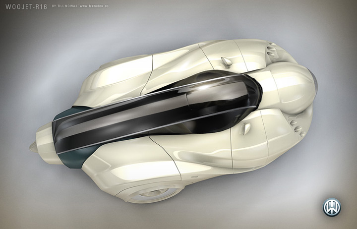 The futuristic car used in the image was designed by Till Nowak in 2006, one year before “Blowout at Exit 16A” was created. Till started to work with capsule shaped vehicles in his shortfilm “Delivery”. The goal of these designs was to create the most powerful and heavy vehicle design but preserve beauty and elegance.