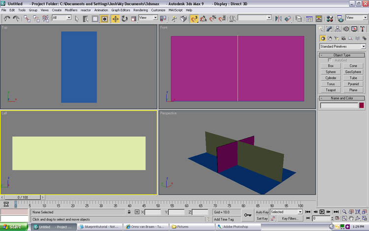 Follow this step for the Front, Top and Side viewports. When you have completed the steps, you should have something like I do below: