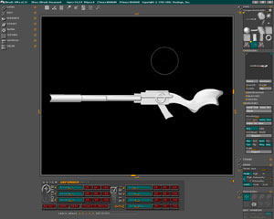 To turn the object into a ‘skin’ or a mesh object you now need to press ‘MAKE 3D SKIN’This will create a new mesh in the TOOL panel. You can change skinning settings to get different type of objects. For this one I used a resolution of 256 (maximum) and a SMOOTH setting of 20.My result can be seen below. This mesh or ZTOOL can now be altered as per a normal ZTOOL, i.e.. with the