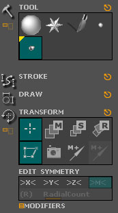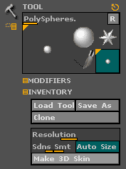 The spheres that you have placed can be moved, scaled, rotated by themselves or as a group. To make an arm, you makes a ball, add a ball doe each joint and pull the fingers into the shape of a hand, easy.Take a look at the new-look transform panel. See figure 1. Notice that SYMMETRY is now in with the transform panel?When you are happy that the Polysphere model is complete you can then use a process called skinning. This creates a single mesh object based on the shape of the combined Polyspheres. There are settings for resolution and smoothness to help get the desired result.TOOL POLYSPHERE