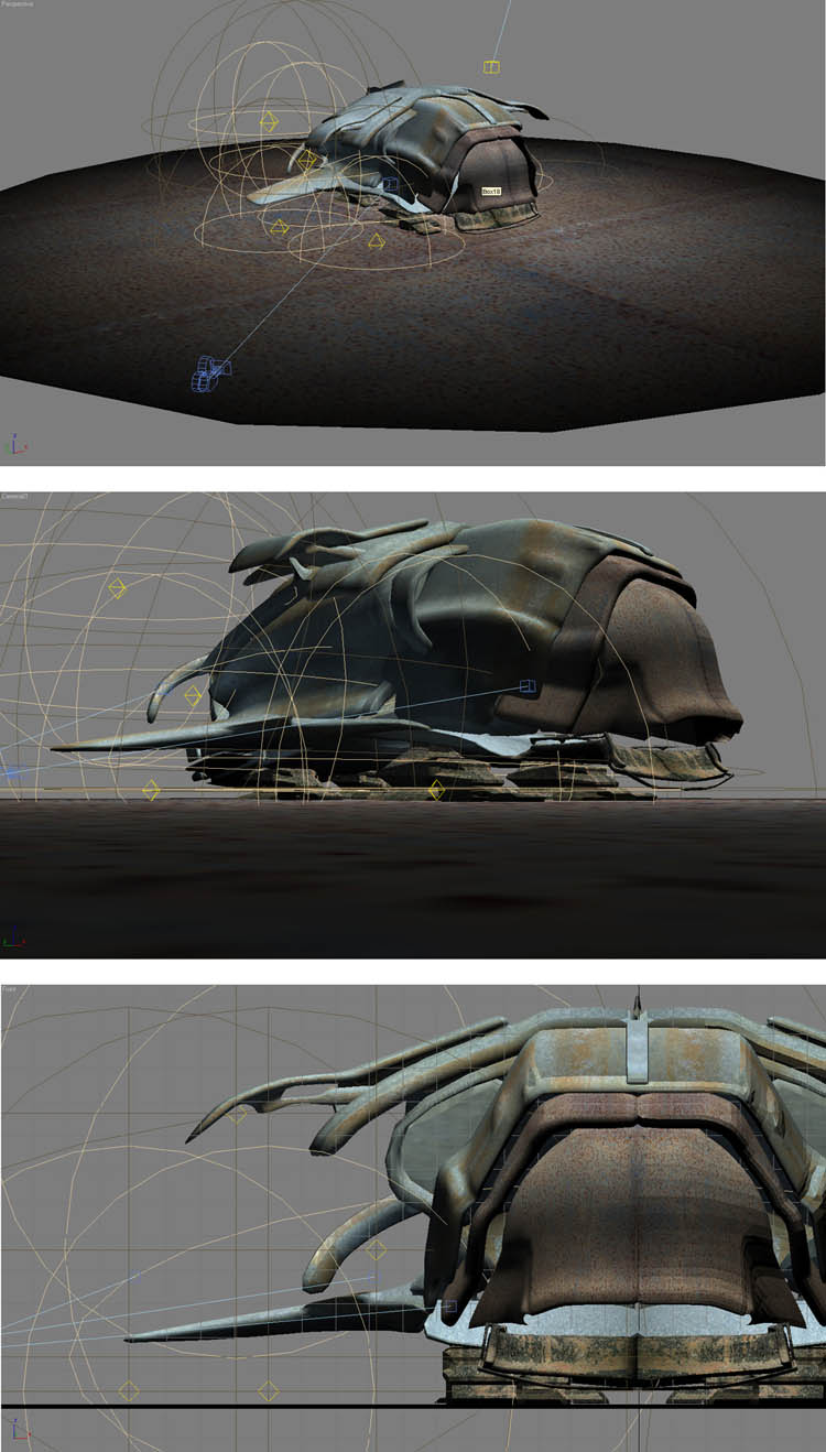 I imagined a large air vehicle and huge cargo ship for this scene. Since the air vehicle has a great volume and carrying capacity, I draw the loading doors markedly large. I made 3d modelling of vehicle using sketches that I prepared for preliminary study.