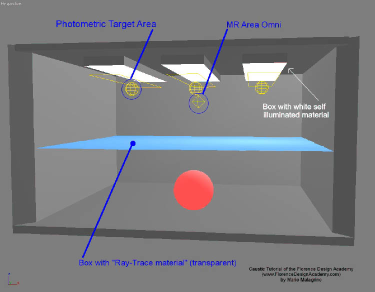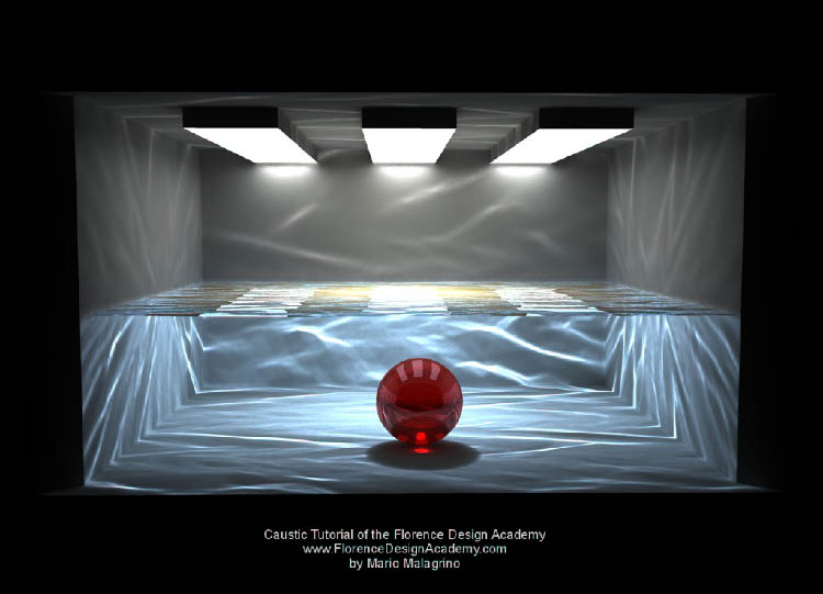 Caustics are really great light effects that you can observe in liquids, glass objects and gems. We are able to simulate this effect with 3D Studio Max perfectly. This tutorial about Caustics will work only if you enable “Mental Ray” ! (This tutorial was made by the Florence Design Academy www.florencedesignacademy.com in Max 8).