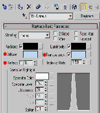 After you made the room you must create the water. We can do that with a simple box. To create the small waves on the surface you have different possibilities (or with a material or by polygons). For a transparent water material create a “Raytrace” material (it must be transparent and a bit reflective). To create a wave effect put in the “bump map” a “noise”-map with a quite small size; to simulate trough geometry deformation the noise/wave effect you must apply to the box a “noise modifier”. The wave size will influence the caustic shapes. Big waves/noise = Big caustic shapes ! After you made all the objects you must create a “MR.Area Omni” light on the top of the water in the center of the room like on image “3”. Now make a right mouse button click on the MR. Area Omni and disable “AFFECT SPECULAR” and “AFFECT DIFFUSE” like on image “5”.