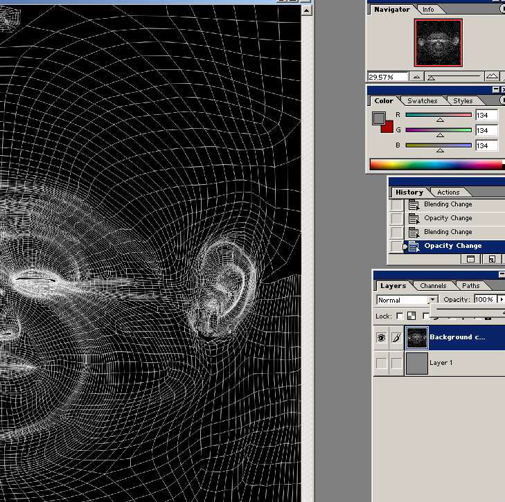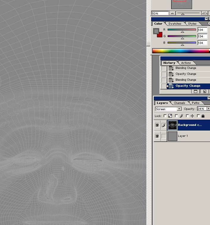 I’ve made a gray 50% gray layer, below the uv map layer. Now i’ve screened the uv map over the gray layer and turned down the opacity.