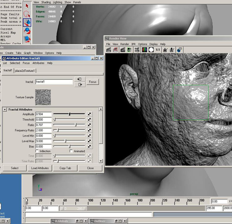 Now using the IPR Interactive renderer, i’ve played about with different textures and settings looking for different parts of the skin.
