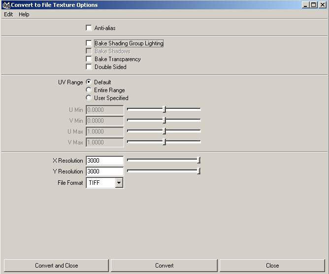 From the menu shown above I first selected the head mesh then shift selected the shader, then select convert to file texture from the menu.