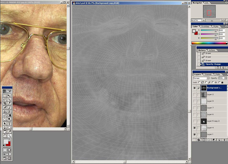 The pot mark texture opened in photoshop; we are only actually going to use it in a few places like the nose and around his cheeks, we will erase the rest.