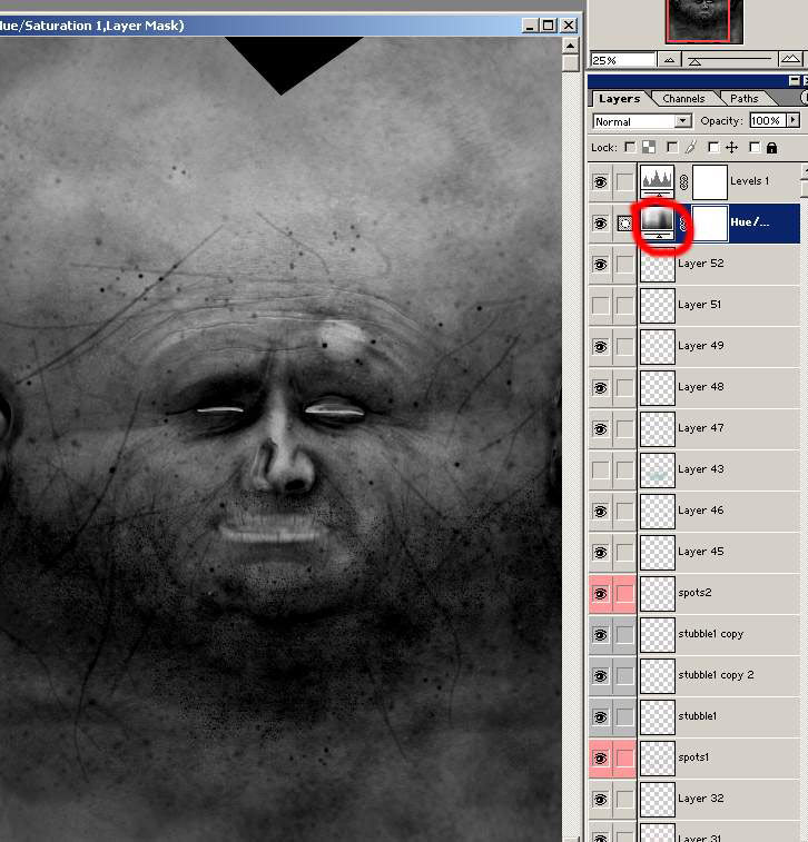 For the spec map I just used what i’ve already painted i’ve just by adding a Hue/Saturation layer to fade out all the colours.