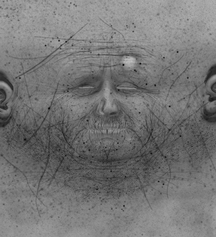 Well here’s the translucence map trying trying fake a little sub surface scattering and get some redness around the ears and a little around the nose.