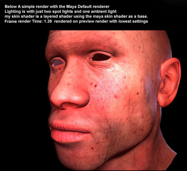 But i’ll explain what textures are assigned here. Marked A is a translucence map click here to see it in more detail. This layer it just to trying to achieve some sub surface scattering effect underneath the main skin layer.