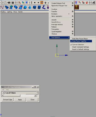 Open the extrude edges menu so its aways on the screen and when extrudeing it’s best to check that keep faces together is on in the menu.