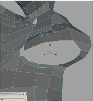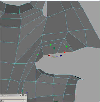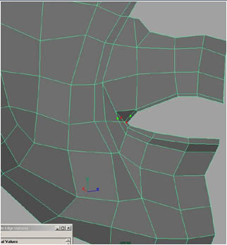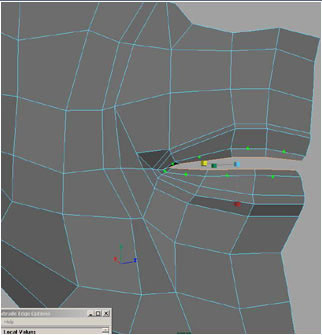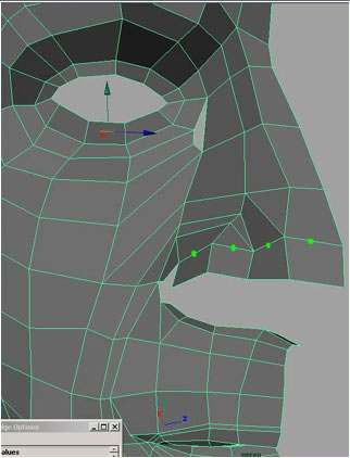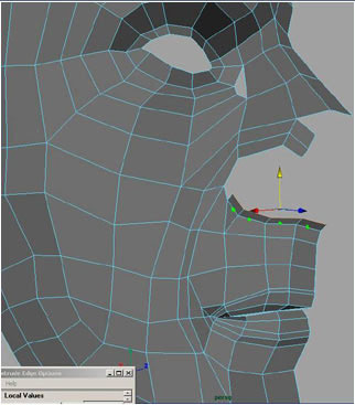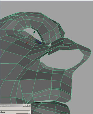 Extruding 3 edges here to form the upper part of the top lip.