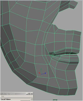 Extrude the edges to form the lips.