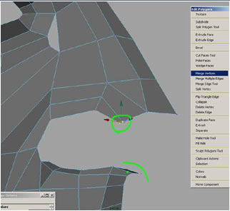 Marked in green extrude edges, marked in red merged edge’s to form the corner of the mouth, if you don’t want the triangles you can just delete that edge, but I’ll just leave it for now.