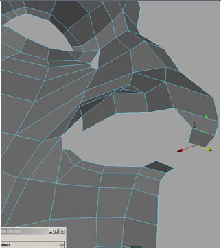 Now on to the nose, extrude marked edges.