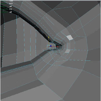 Above I’ve started making the teeth. I’ve started with just a single polygon.