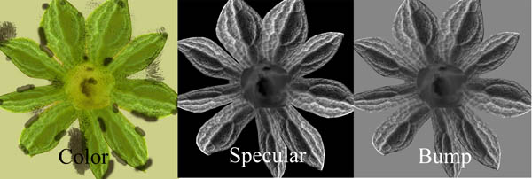 For the strawberry leaves, I used an Anisotropic Material and manipulated the sliders of translucency attributes.