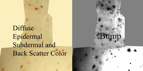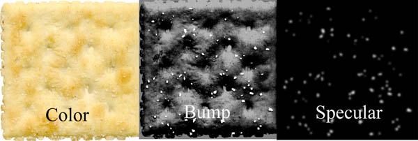 For the Blue Cheese Skin, I used a Lambert, and played around with the translucent values. Same thing for the brie cheeses. For the wrapper, I used a two-sided shader and plugged in the front and back color map. For the tray, I used a metal texture from www.cgtextures.com and plugged it into the diffuse and reflectivity attribute of the MIA material.