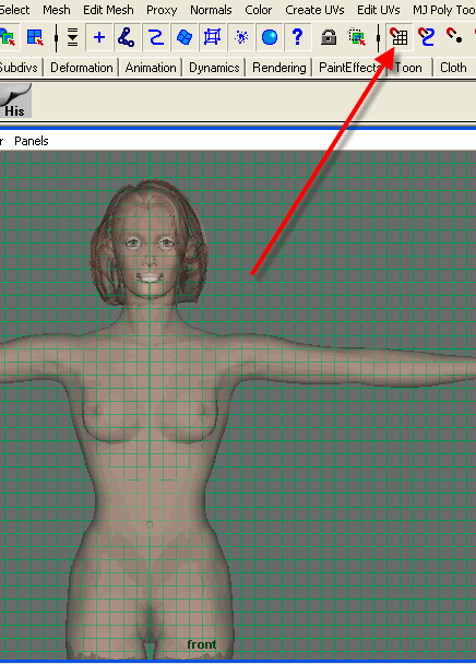 2-ok now go to your front view port focus some where on your character and then activate (Snap To Grid) like the image illustrating below.
