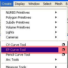 3-go to create pull down menu choose (EP Curve Tool) like below,
