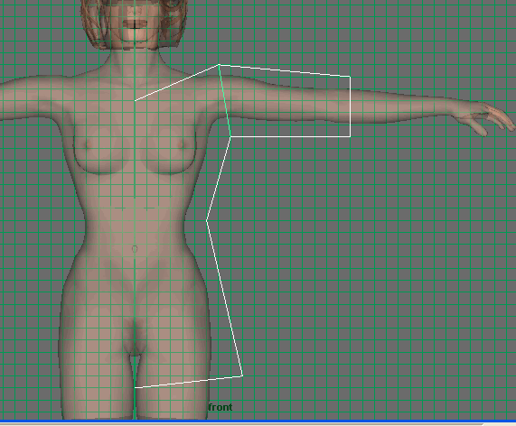 4-and now start creating curves on the front view while creating the curves make sure you have activated (Snap To Grid), once you select the EP Curve click on the middle of character and then click some where above her shoulder, once your curves created hit enter to make the created curve independent, now yours should look something like mine below,