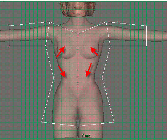 11-since we have curves for the waist and just need few more curves to make the cloth they way in the real world, just create 2 more curves some where upper her chest, like the picture illustrating below.
