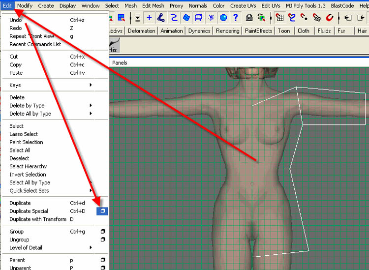 10-now your curve should be duplicated to the other side of your character, as in the image below.