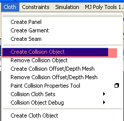 33-with the character still selected go to (Cloth) pull down menu and choose (Create Collision Object),