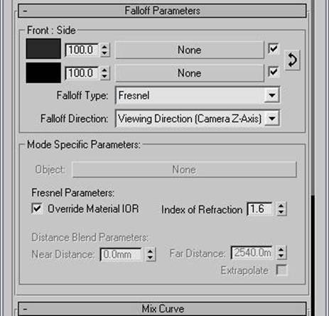 10. Change the ‘Falloff Type’ to ‘Fresnel’ (see image below)