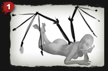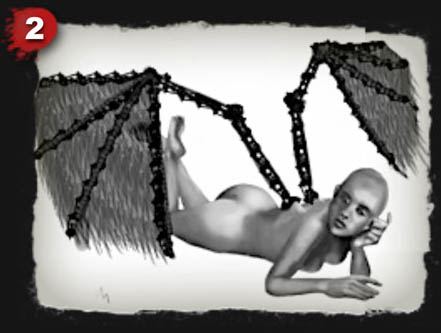 I wanted some wings, so I just threw down some framework. Details were added quickly with a custom brush.
