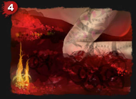 4 : Custom brushes (if available in your application) will speed things up tremendously. I made my own for the hair, rocks, fire, tattoos and other objects that where too repetitious to paint more than once.