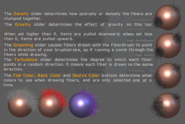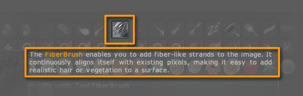 Next, go to the TOOL PANEL and take a look at the settings in the FIBRE BRUSH panel. Most of these are self explanatory and if you hold down CTRL whilst hovering over the item ZBrush will tell you what it does anyway: