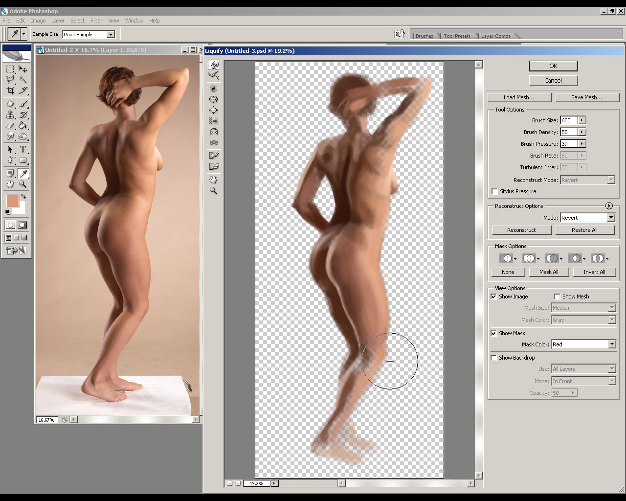 8. As I sit back and evaluate my work, I realize certain areas within my study have become distorted. A quick way of fixing these parts is by using the Liquify Tool under FILTER > LIQUIFY. The Liquify Tool acts a bit like silly putty and allows you to make subtle or large adjustments to an image without drastically affecting the quality of your brush work.