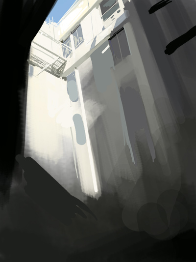 The first step in all of my paintings, whether it is a character or an environment, is to lay down the basic shapes. These shapes become the building blocks of the illustration, and without them it is easier for your illustration to fail.