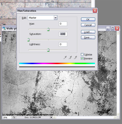 After you find the texture you want to use, desaturate it by hitting ctrl+u and then dragging the saturation bar down all the way to the left.