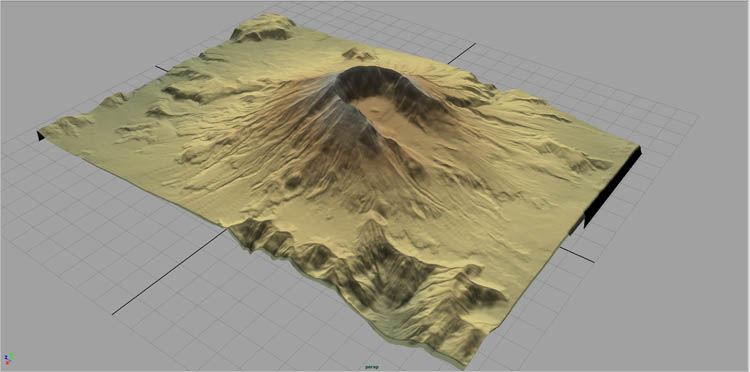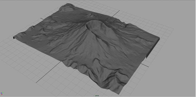 After a few seconds we have the sculpted plane with our Terragen-generated terrain.