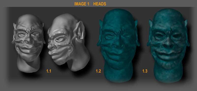 MEET THE MODELSome decisions need to be taken at modelling time. You need to detail the model as much as possible in EDIT mode before moving onto texturing. If you look at the lips on the head below (1.1)