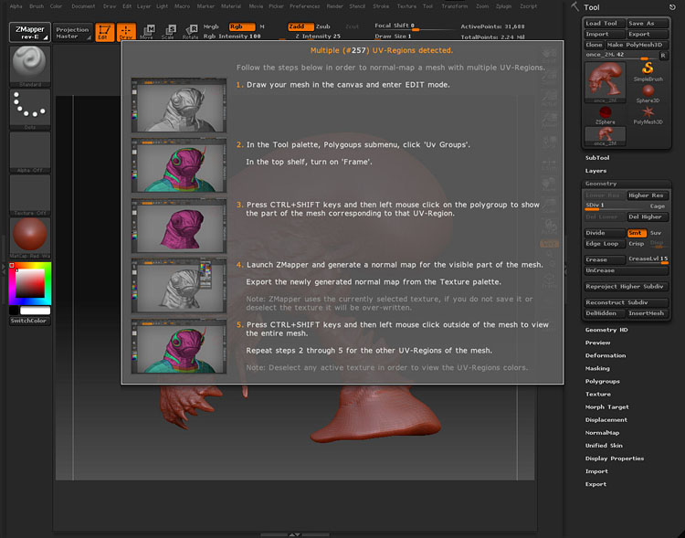 “Hi Poly model —> Normal Map in ZBrush 3.1” by Martin Konecny