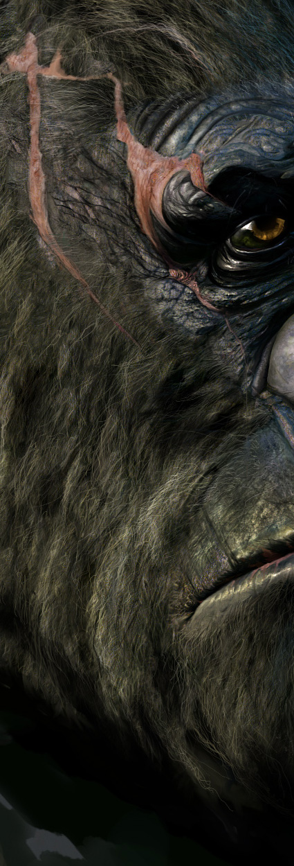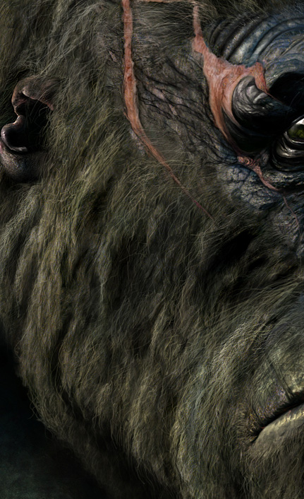 Here we will start to advance on his shadows. I use the Magic Lasso tool to select a chunk out of his cheek, by Layer Via Copy again, then I set that cut out layer to Multiply. I then go to Image<Adjustments<Hue & Saturation and drop the saturation to nearly the end. After that, I bring the opacity lower on the Multiply layer, so it blends in more with the fur instead of being a full on block of black. Once I have it to a realistic look, I’ll merge the two layers together and start to detail over that. By detailing that, I will add other threads on top of the dark patch, darker grays, soft whites and other variations so it’s not just a black hole in his cheek. Make sure the hairs also go seamlessly, and don’t just appear out of no where. You want them to connect to his “mane”; they have to be a part of his natural fur to look realistic.