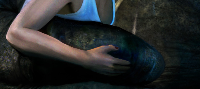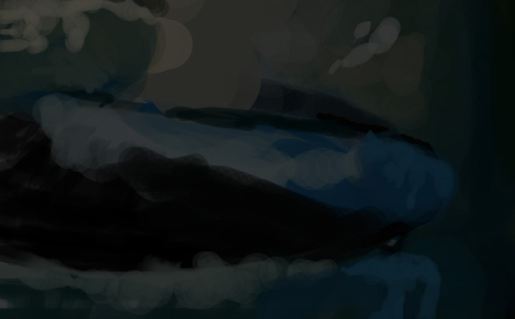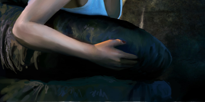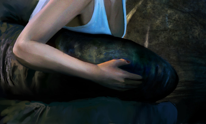 I again took advantage of the grunge brushes and started to apply much textures with them to the top of Kong’s finger. I first started with an applying of green grunge brushes on the fingers, then went over it with a low flow and opacity yellow color, then smudged just a teeny bit. After that, I used the sharpen tool to add some more grainy texture to the wrinkled-messy skin. After I have sharpened, I went over it with a size 3 brush, and went over it with squiggly lines to get just that dirty worn look that…an ape would have. I used a charcoal brush again to add more little bumps and notches on his finger (more near Ann’s armpit).
